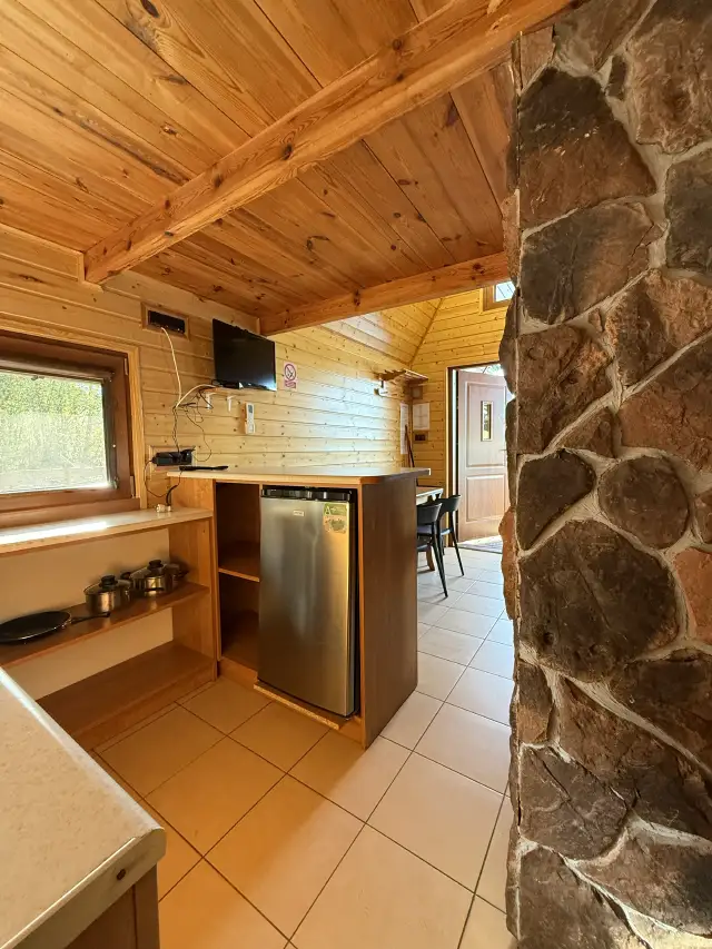 Każdy domek urządziliśmy z myślą o komforcie gości i wyposażyliśmy w: